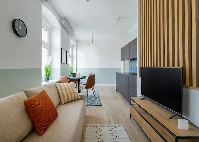 公寓旁边有弗罗茨瓦夫的主要名胜,包括奥索林姆以及弗罗茨瓦夫。 弗罗茨瓦夫动物园离公寓2.7公里。 Pod Szermierzem给客人提供Europese佳肴,距离公寓仅200米。 公寓附近有著名的格伦瓦德桥。